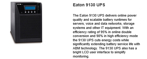 Eaton is a leading provider of quality backup power UPS, Uninterruptible Power Supply. Eaton UPSs are designed to deliver high quality backup power from desktop PCs to large data centers.