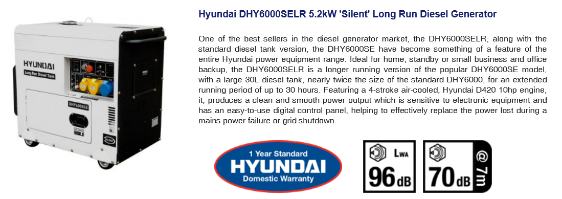 Hyundai DHY6000SELR 5.2kW Silent Long Run