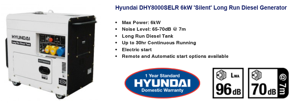 Hyundai DHY8000SELR 6kW Silent Long Run